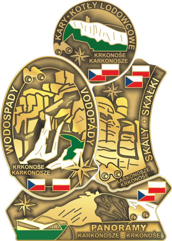 To zestaw czterech odznak turystycznych. Dotyczą one karkonoskich: