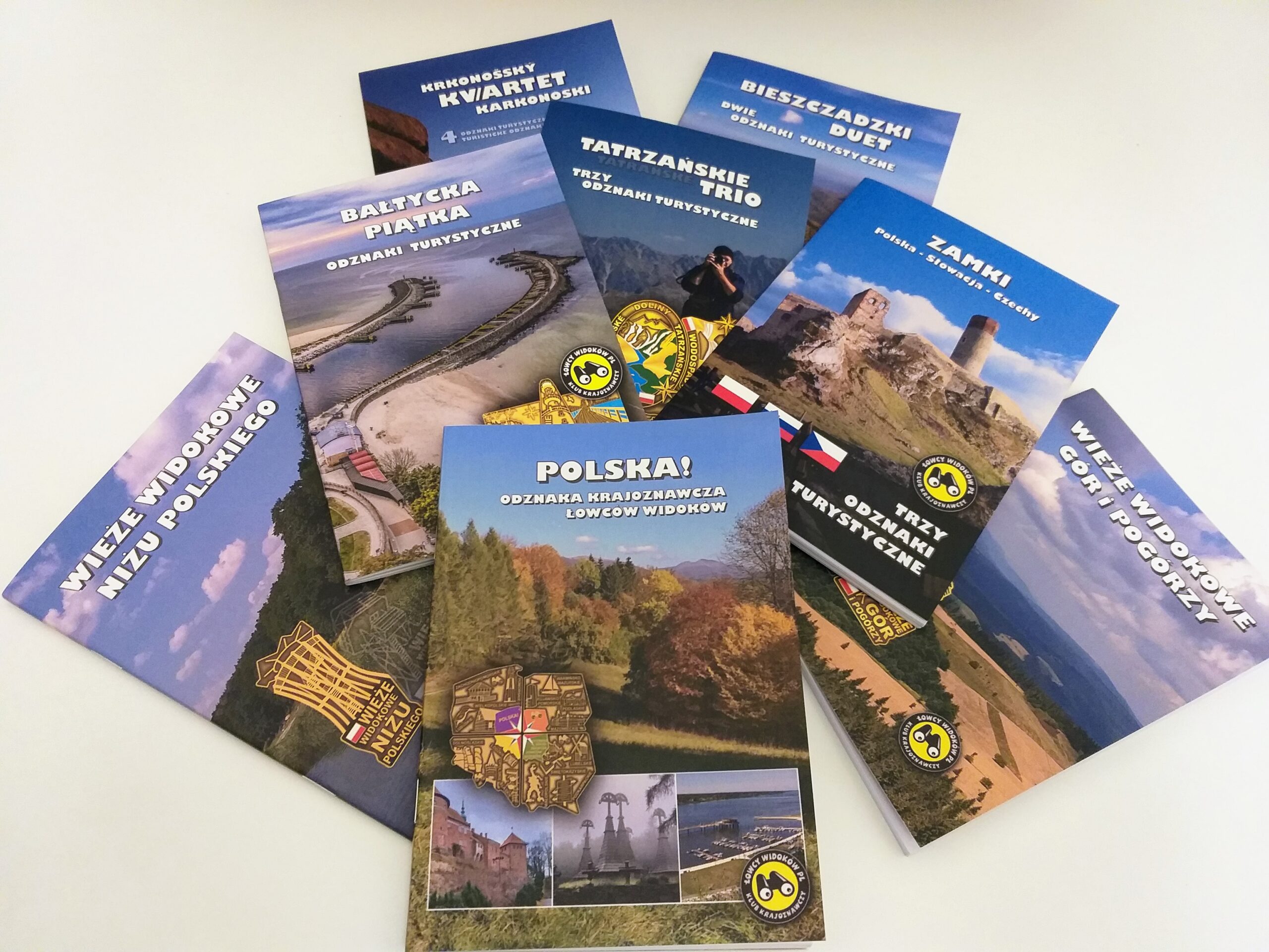 Zamki – Hrady, Wieże Widokowe Gór i Pogórzy, Wieże Widokowe Niżu Polskiego, Bałtycka Piątka, Karkonoski kwartet, Tatrzańskie Trio, Bieszczadzki Duet, Odznaka krajoznawcza POLSKA!, Parki Krajobrazowe, Niesamowite Warmia i Mazury, Urokliwe Świętokrzyskie, Rozhľadne Slovenska, Rozhledny Česka